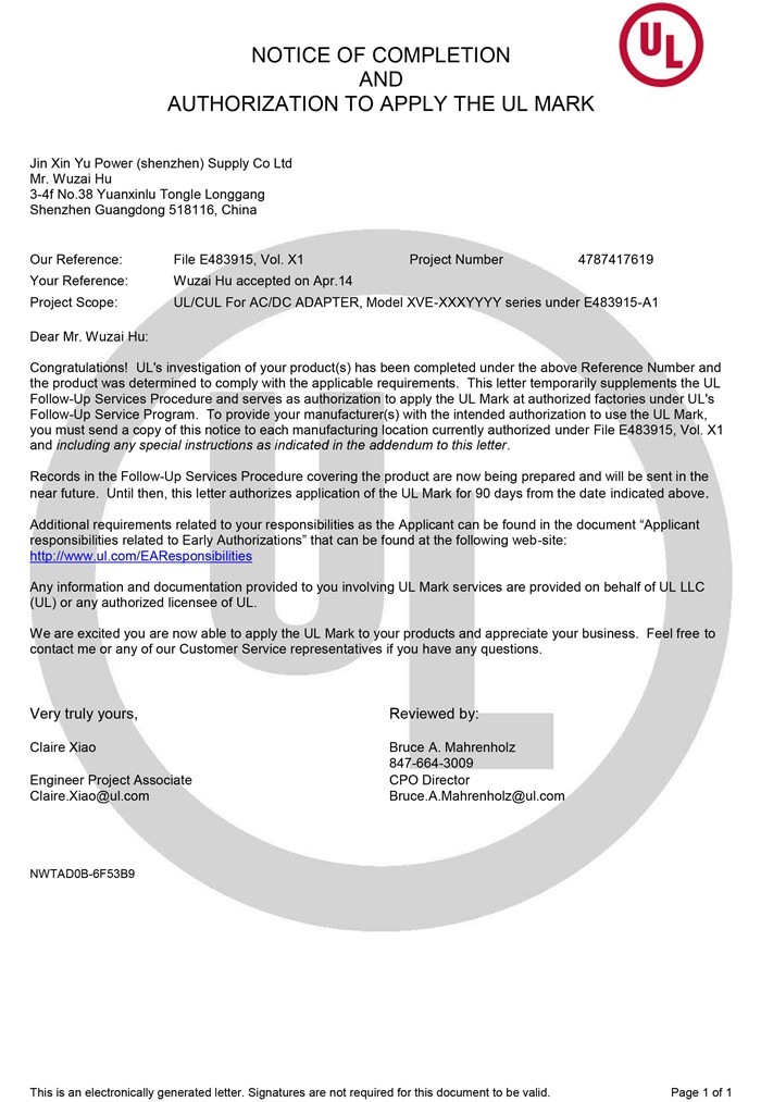 » 企業(yè)榮譽 » UL證書