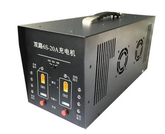 5.便攜式無人機充電器 這款充電器是由鄭州正方科技推出的,最大的亮點就是操作簡單、便捷,在使用時直接插 上220V電源就可以直接充電,充電電流20A。充電器還有放電功能,在電池如果要存放,充電器能把電池電量充到或放到最佳的保存狀態(tài),目前是只支持6S電池的充放電,一次可以充兩組,功能確實沒有之前的幾款充電器多,但植保上的飛機基本上用的都是6S的所以這個影響不是太大,對于植保的飛手和農(nóng)民而言確實省了不少的操作流程,工作起來很簡單。價格應該是偏低了1600左右。