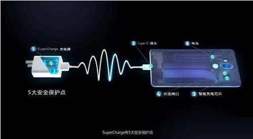 SuperCharge最大輸出功率可達(dá)25W。對于一款配備4000mAh電池的華為手機(jī)也只需30分鐘就可充滿58%,華為SuperCharge超級快充技術(shù)提供15層安全防護(hù),分別在SuperCharge充電器、Type-C接口、智能充電芯片、分流閘門、電池構(gòu)成維護(hù)節(jié)點(diǎn)。每個(gè)維護(hù)點(diǎn)又有三層防護(hù)網(wǎng)(安全電壓防護(hù)網(wǎng)、安全電流維護(hù)網(wǎng)、溫度監(jiān)控維護(hù)網(wǎng)),合計(jì)15層安全維護(hù)機(jī)制,以此來實(shí)現(xiàn)進(jìn)一步提升用戶對快充安全的用機(jī)體驗(yàn)。