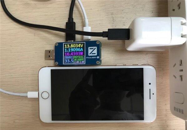 通過(guò)功率計(jì)測(cè)試,原裝充電器充電電壓約為5V,電流約為1A,基本可以達(dá)到額定功率5W,5W的充電速率目前僅有少數(shù)廉價(jià)山寨機(jī)采用,甚至幾百元的安卓手機(jī)普遍都支持5V/2A的充電功率,蘋(píng)果為iPhone 8系列標(biāo)配5W的電源適配器更多的是出于利潤(rùn)率以及新型適配器備貨量的考量。