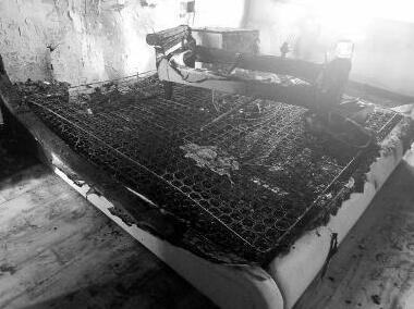 事發(fā)常青花園五小區(qū)14棟。昨天上午10點(diǎn)多,武漢晚報記者趕到現(xiàn)場看到,小區(qū)電工正在起火房屋內(nèi)檢查電路。整個房間都被熏得漆黑,起火點(diǎn)位于房屋主臥,一張雙人床燒得只剩床墊內(nèi)的彈簧支架。