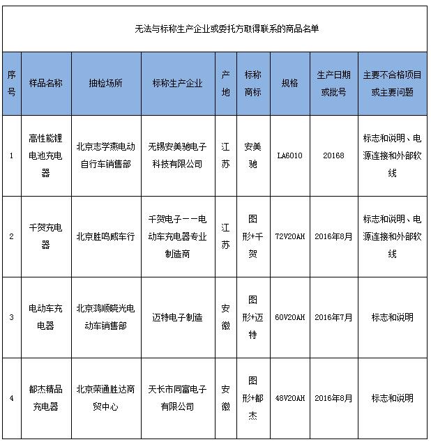 北京市工商行政管理局官網(wǎng)公布流通領(lǐng)域電動自行車用充電器質(zhì)量抽查檢驗(yàn)結(jié)果,標(biāo)稱“天長市鑫鵬電子”生產(chǎn)的“欣鵬”牌60V-12AH規(guī)格電動車充電器等40批次商品存在問題。