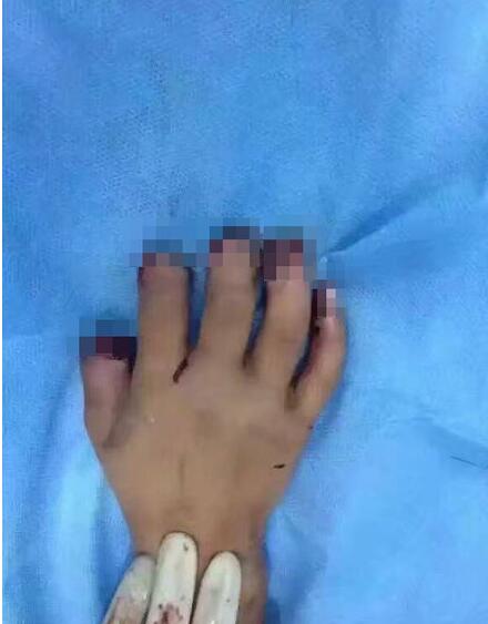 據(jù)悉,被送到哈爾濱市骨傷科醫(yī)院時(shí),小卓的短褲上全是血,右手除小手指是完整的,其余4個(gè)手指都炸斷了,電子元件的碎片還插在手掌上,孩子的臉上、胸部、肚子和腿部也有被崩壞的傷口。醫(yī)院立即為孩子進(jìn)行了手術(shù),術(shù)后病情穩(wěn)定。