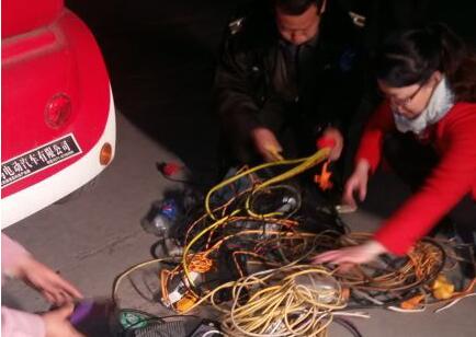 12日晚上9時許,北林路辦事處安監(jiān)辦的工作人員帶領巡防隊員一起,首先來到了位于朝陽路上的園藝小區(qū),發(fā)現(xiàn)小區(qū)的居民樓上,橫七豎八地從不少居民家的窗戶里扯出了電線。電線垂到樓下后,有的連在一個插線板上,而插線板上又插著電動車的充電器。也有的飛線帶有插頭,直接接在電動車的電瓶充電器上。為了消除安全隱患,安監(jiān)人員及時切斷了這些飛線的電源,收繳了一批正在充電的電動車充電器。隨后,工作人員在恒生家園小區(qū)里,也發(fā)現(xiàn)了飛線充電的亂象。在金明路姚橋小區(qū)里,一棟居民樓上竟然扯了40多條充電線,這些電線粗細不一,顏色雜亂,工作人員將線剪斷后,竟然盤了一大捆。