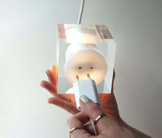 科特賴克室內(nèi)設(shè)計雙年展室內(nèi)設(shè)計獎得主,荷蘭工作室atelier ARI 近日推出的pluglight 設(shè)備是一款多功能設(shè)計吊燈,別出心裁地將燈具與電力供應結(jié)合在一起。pluglight采用閃閃發(fā)光的透明亞克力塊以及集合了所有技術(shù)構(gòu)件的光線漫射管制作而成。