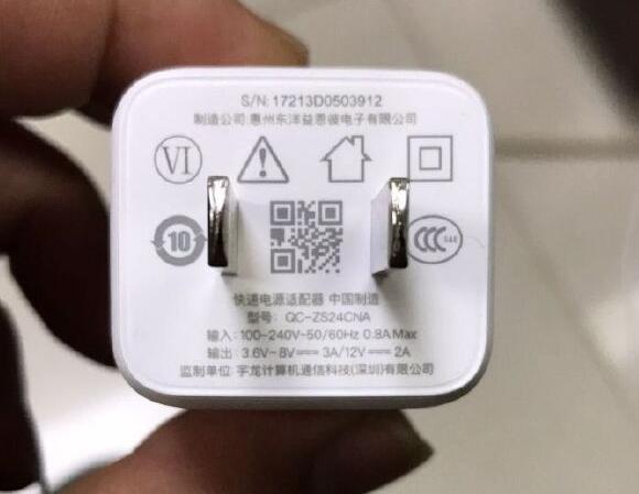 充電器的輸出功率是:3.6V-8V===3A/12A===2A,是快充頭無誤。