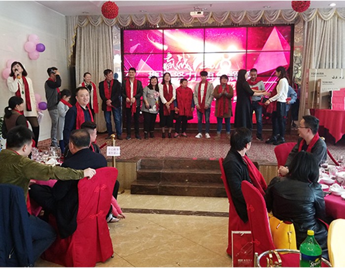 開(kāi)場(chǎng)舞是有公司五位美女為大家?guī)?lái)的感恩的心手語(yǔ)舞。就像主持人說(shuō)的那樣,懷著感恩的心感恩家人、感恩鑫冠宇達(dá)所有的同事們、感恩與我們合作的每一個(gè)客戶供應(yīng)商、感恩貴人、感恩所有我們值得感恩的人。心懷感恩勝過(guò)千言萬(wàn)語(yǔ),也祝愿鑫冠宇達(dá)集團(tuán),新的一年孕育著新的希望,新的征程將譜寫(xiě)新的輝煌,今天,我們的航船已經(jīng)起錨,明天,不管經(jīng)歷怎樣的風(fēng)浪,我們到達(dá)理想彼岸的信心不變。讓我們并肩攜手,一起踏上鑫冠宇達(dá)集團(tuán)的新征程!。