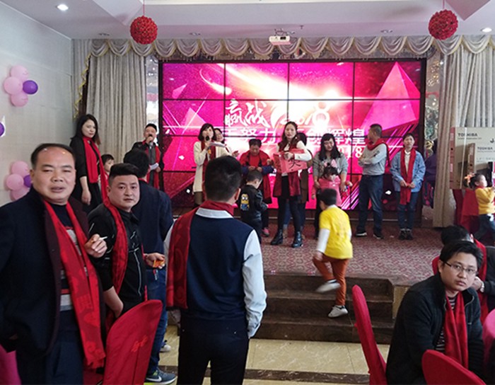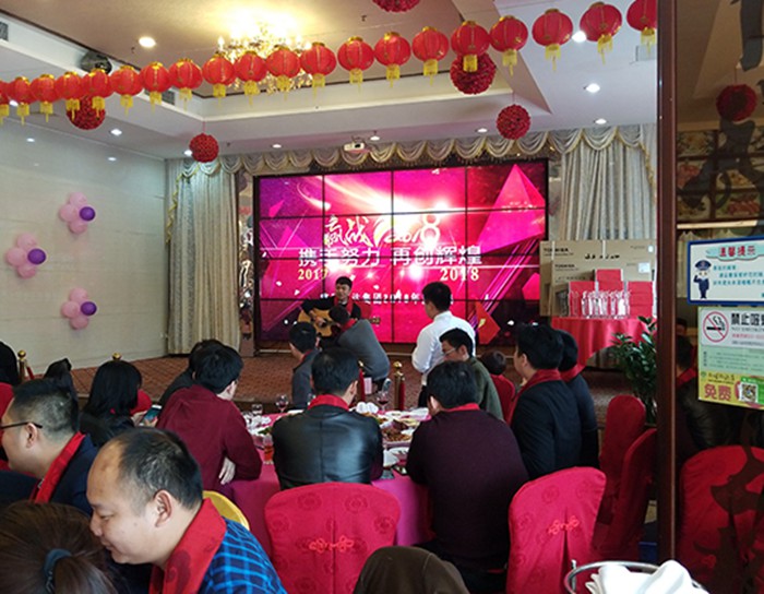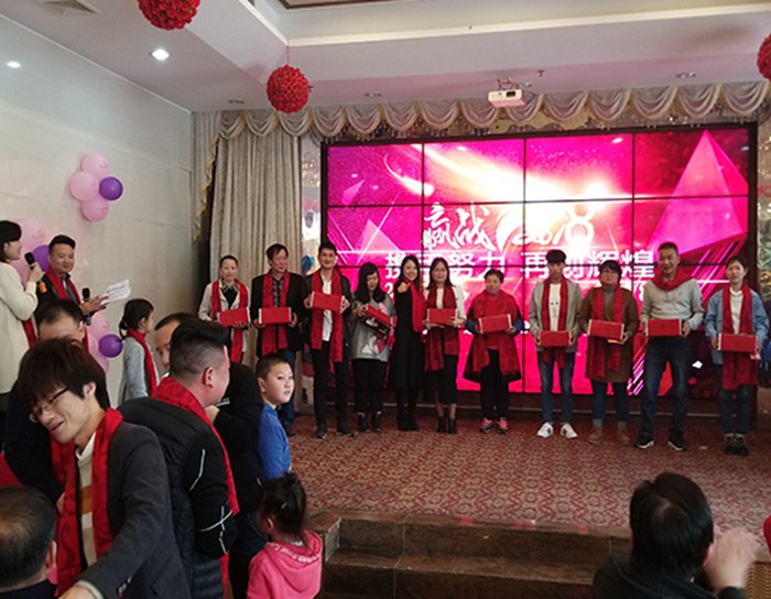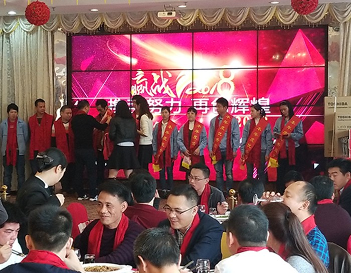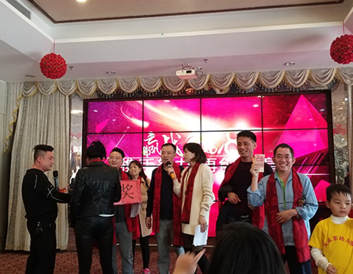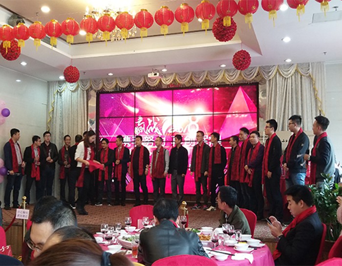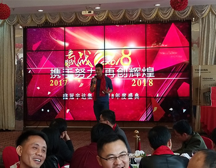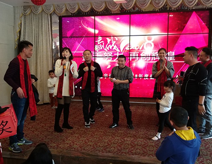 紅彩艷艷的大屏幕,顯示著贏戰(zhàn)2018,攜手努力再創(chuàng)輝煌,訴說(shuō)著新的一年,新的開(kāi)始,新的目標(biāo)攜手努力共同前行。在全場(chǎng)近500人的歡呼和吶喊中,2017年鑫冠宇達(dá)年會(huì)盛宴正式開(kāi)始。隨著主持人為我們送上新年的祝福,年會(huì)盛宴節(jié)目正式開(kāi)始。