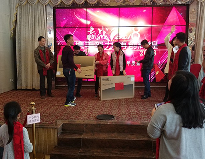 節(jié)目也都表演完了,該到本年會(huì)盛宴最關(guān)鍵的時(shí)刻了,抽獎(jiǎng)。對(duì)于很多同事們來(lái)說(shuō)抽獎(jiǎng)是最關(guān)鍵的時(shí)刻了也是最激動(dòng)人心的時(shí)刻了,萬(wàn)一運(yùn)氣好,被55寸的電視機(jī)砸中呢?主持人介紹完規(guī)則跟獎(jiǎng)項(xiàng)之后,抽獎(jiǎng)?wù)介_(kāi)始!