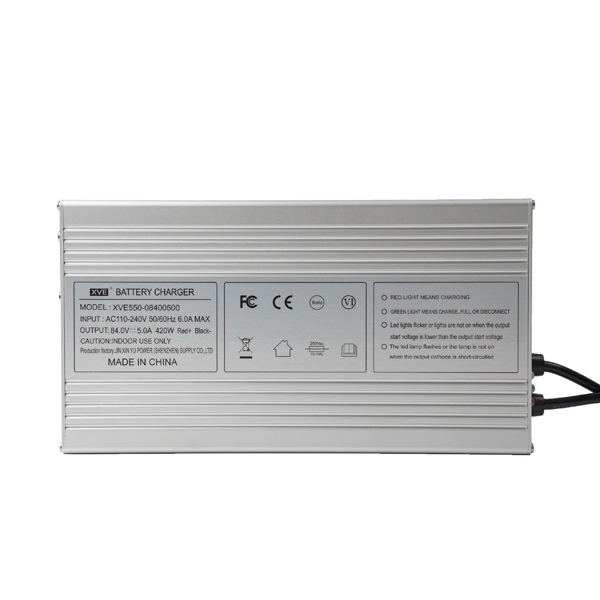 專業(yè)生產(chǎn):鋰電池充電器,電源適配器,電池組充電器,電動工具充電器,電動車充電器,平衡車充電器,獨輪車充電器,滑板車充電器,動力電池充電器,蓄電池充電器等等;參數(shù)有:4.2V系列、5V系列、7.3V系列、8.4V系列、9V系列、12V系列、12.6V系列、13.8V系列、14.4V系列、14.6V系列、15V系列、16.8V系列、17.2V系列、18V系列、19V系列、21V系列、25.2V系列、28.8V系列、29.2V系列、29.4V系列、33.6V系列、37.8V系列、42V系列、43.8V系列、48V系列、50.4V系列、54.6V系列、57.6V系列、58.4V系列、58.8V系列、63V系列、67.2V、71.4V系列、72V系列、84V系列等,產(chǎn)品通過CCC GS UL CE FCC PSE KC SAA PSB LVD CB RoHS等認證,最大做到550W