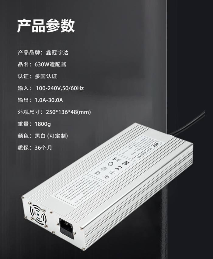專業(yè)生產(chǎn):鋰電池充電器,電源適配器,電池組充電器,電動工具充電器,電動車充電器,平衡車充電器,獨輪車充電器,滑板車充電器,動力電池充電器,蓄電池充電器等等;參數(shù)有:4.2V系列、5V系列、7.3V系列、8.4V系列、9V系列、12V系列、12.6V系列、13.8V系列、14.4V系列、14.6V系列、15V系列、16.8V系列、17.2V系列、18V系列、19V系列、21V系列、25.2V系列、28.8V系列、29.2V系列、29.4V系列、33.6V系列、37.8V系列、42V系列、43.8V系列、48V系列、50.4V系列、54.6V系列、57.6V系列、58.4V系列、58.8V系列、63V系列、67.2V、71.4V系列、72V系列、84V系列等,產(chǎn)品通過CCC GS UL CE FCC PSE KC SAA PSB LVD CB RoHS等認證,最大做到550W